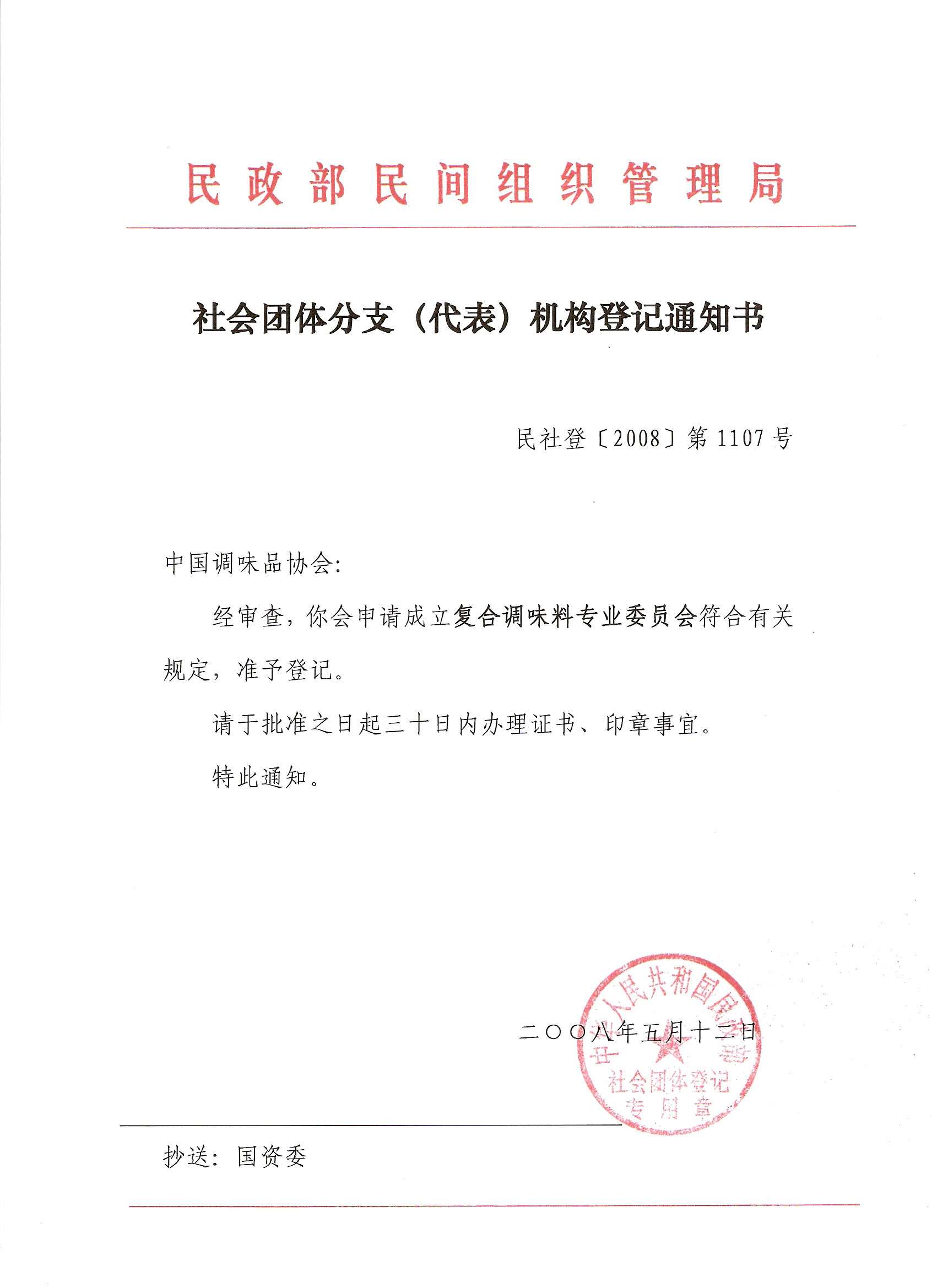 经中华人民共和国民政部(民社登[2008]第1107号文件)(见附件一)批准,爱丫爱丫在线影院电视剧(以下简称协会)复合调味料专业委员会正式成立。